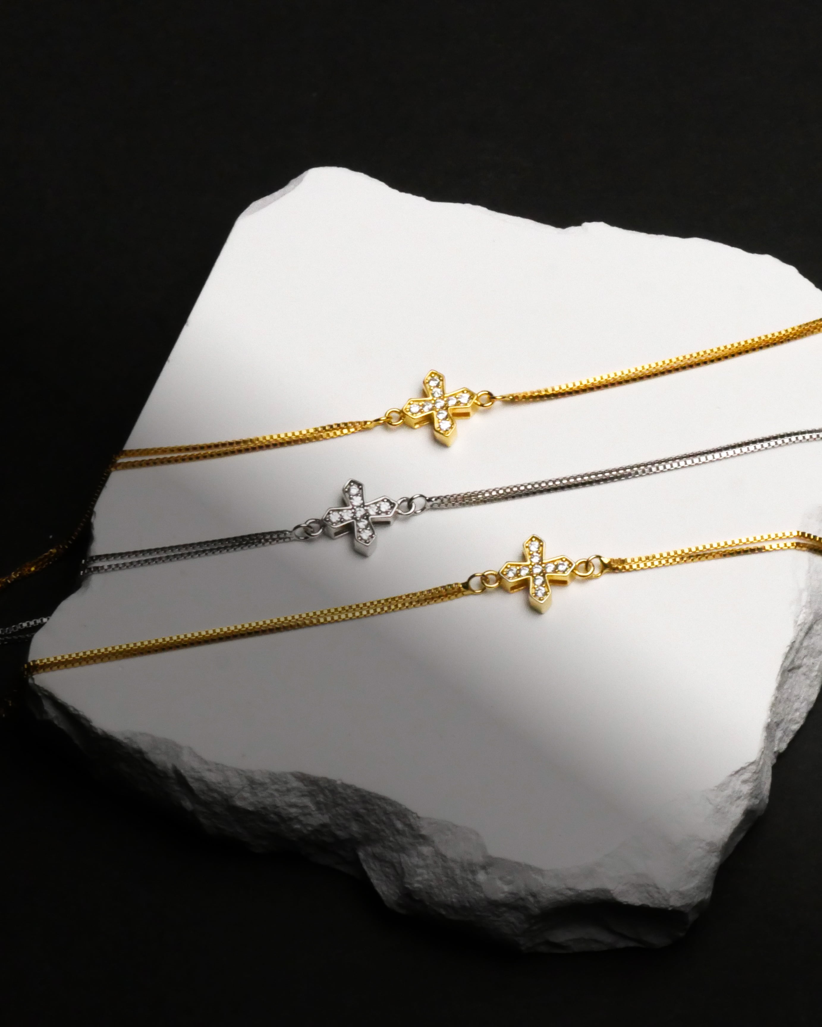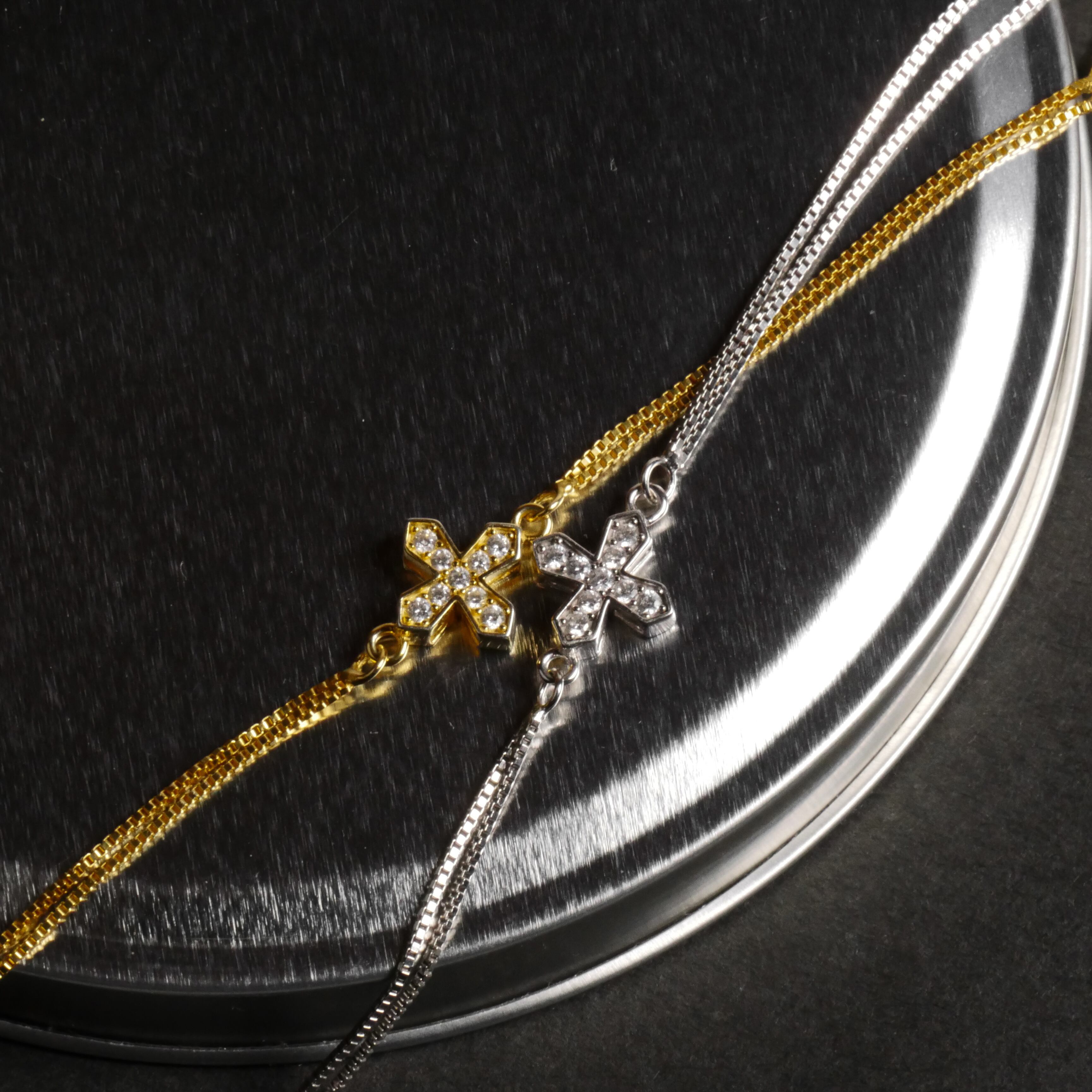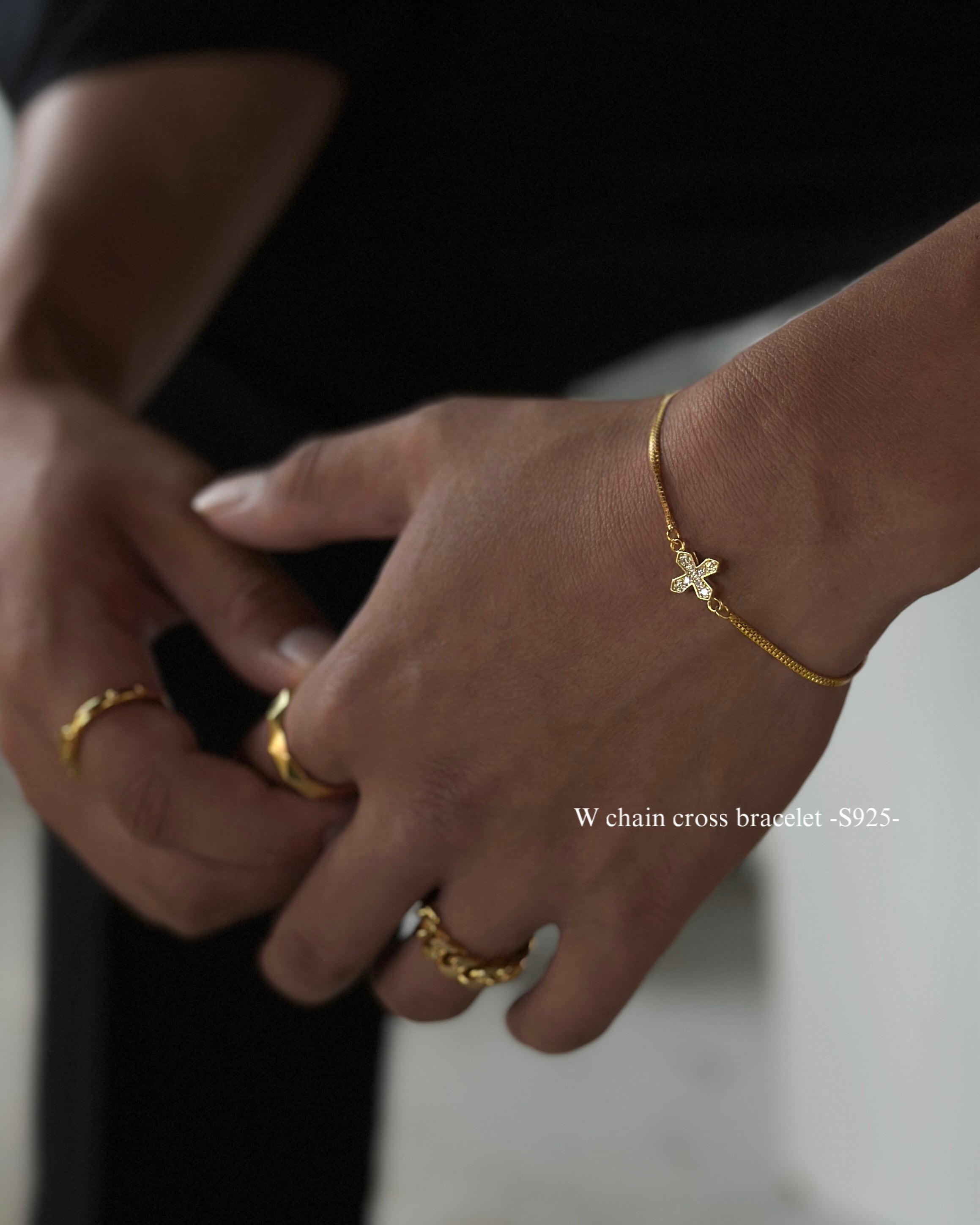【7/30再入荷】W chain cross bracelet -S925- ゴールド