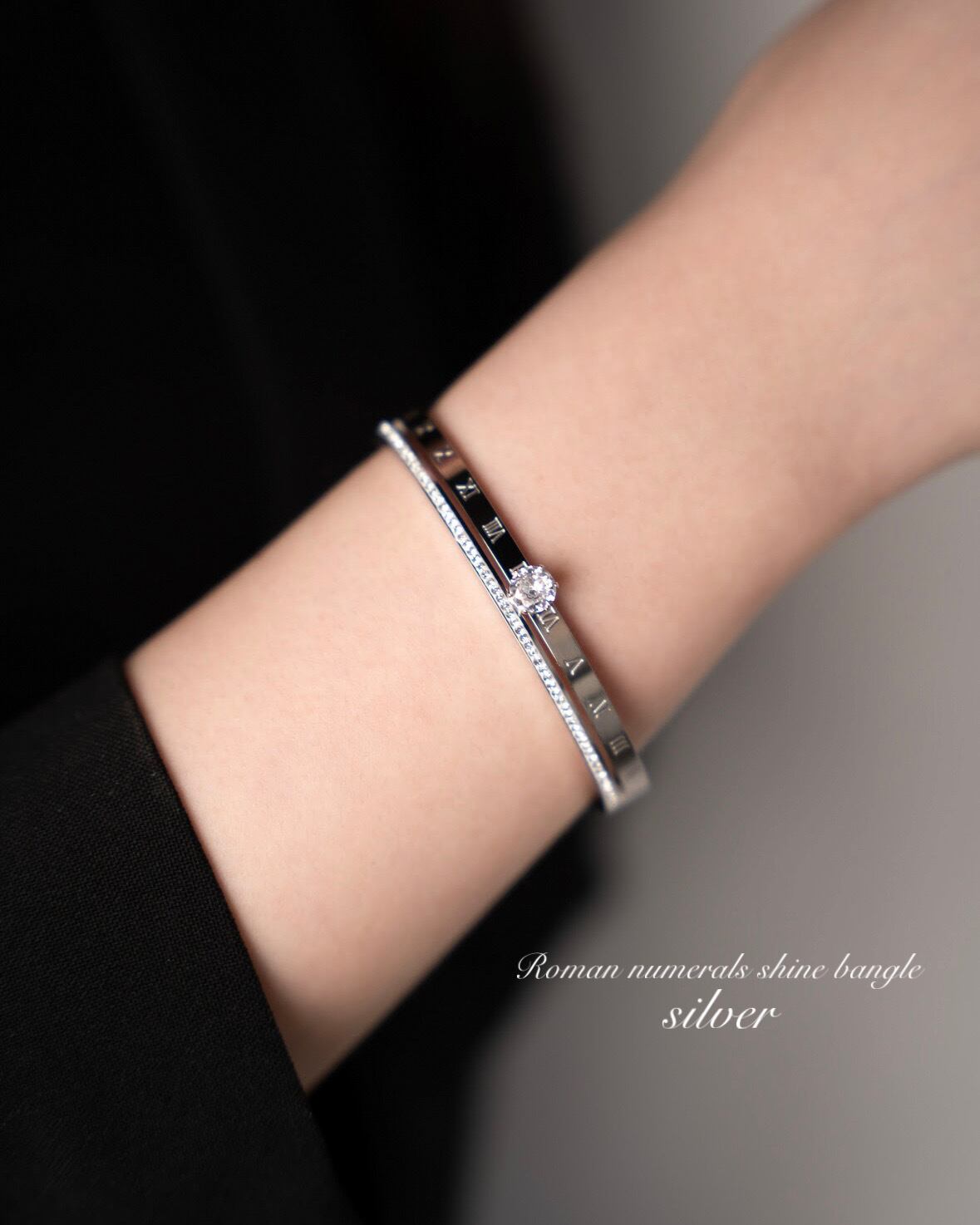 Roman numerals shine bangle シルバー