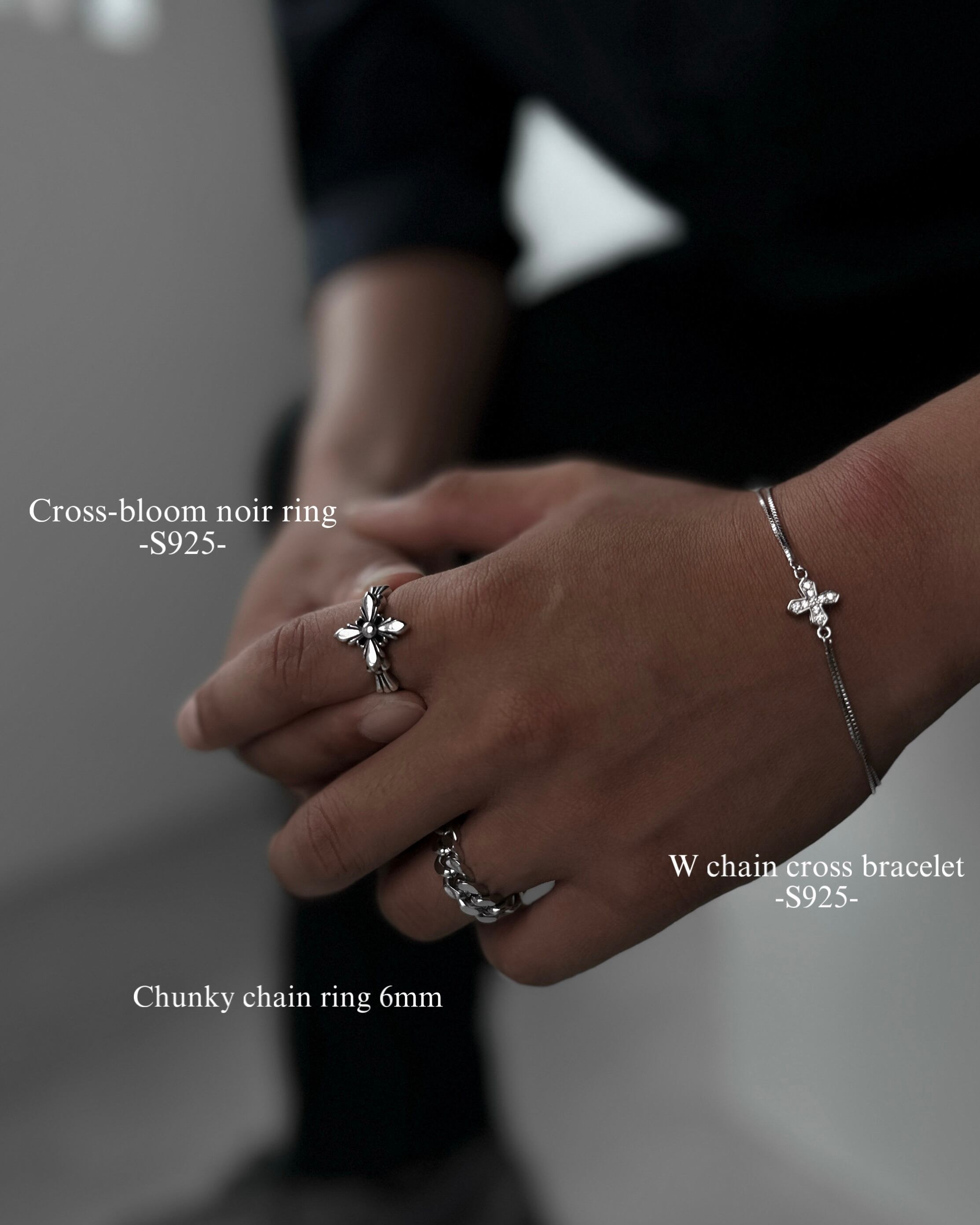 Cross-bloom noir ring -S925-