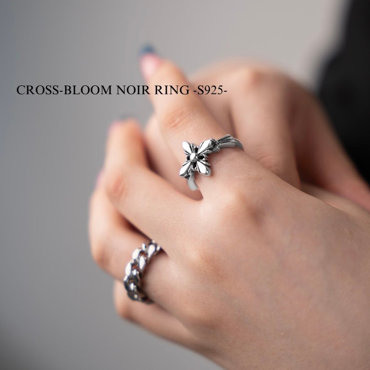 【再入荷】Cross-bloom noir ring -S925-