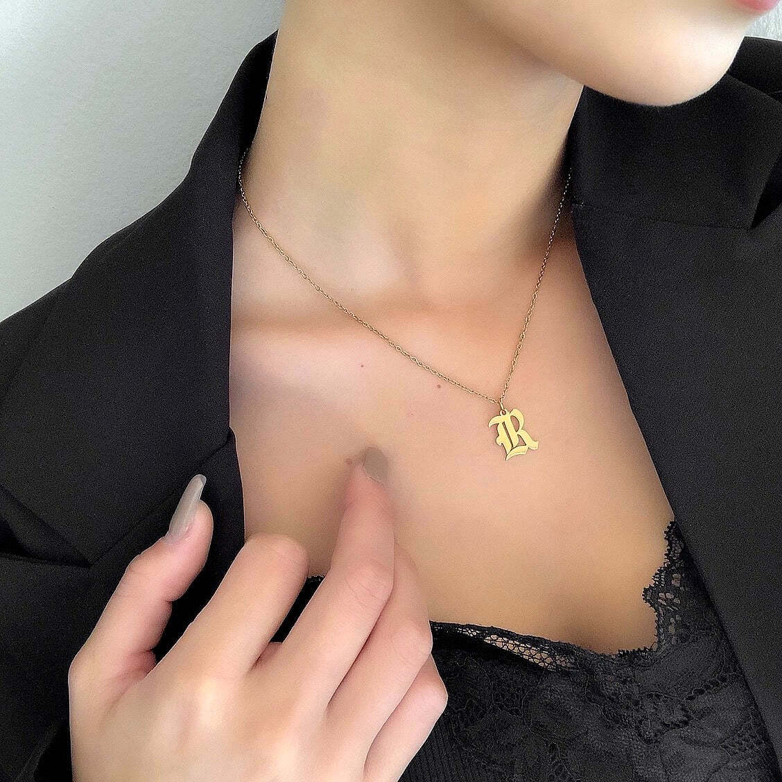 イニシャルネックレス(old English) silver