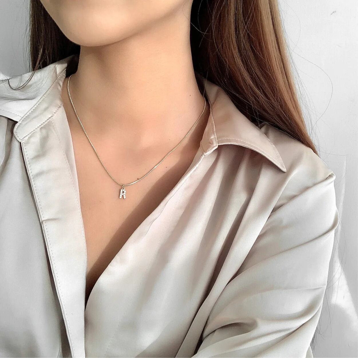 ▶︎普段使いに最適。華奢なスネークチェーンタイプのイニシャルネックレス。