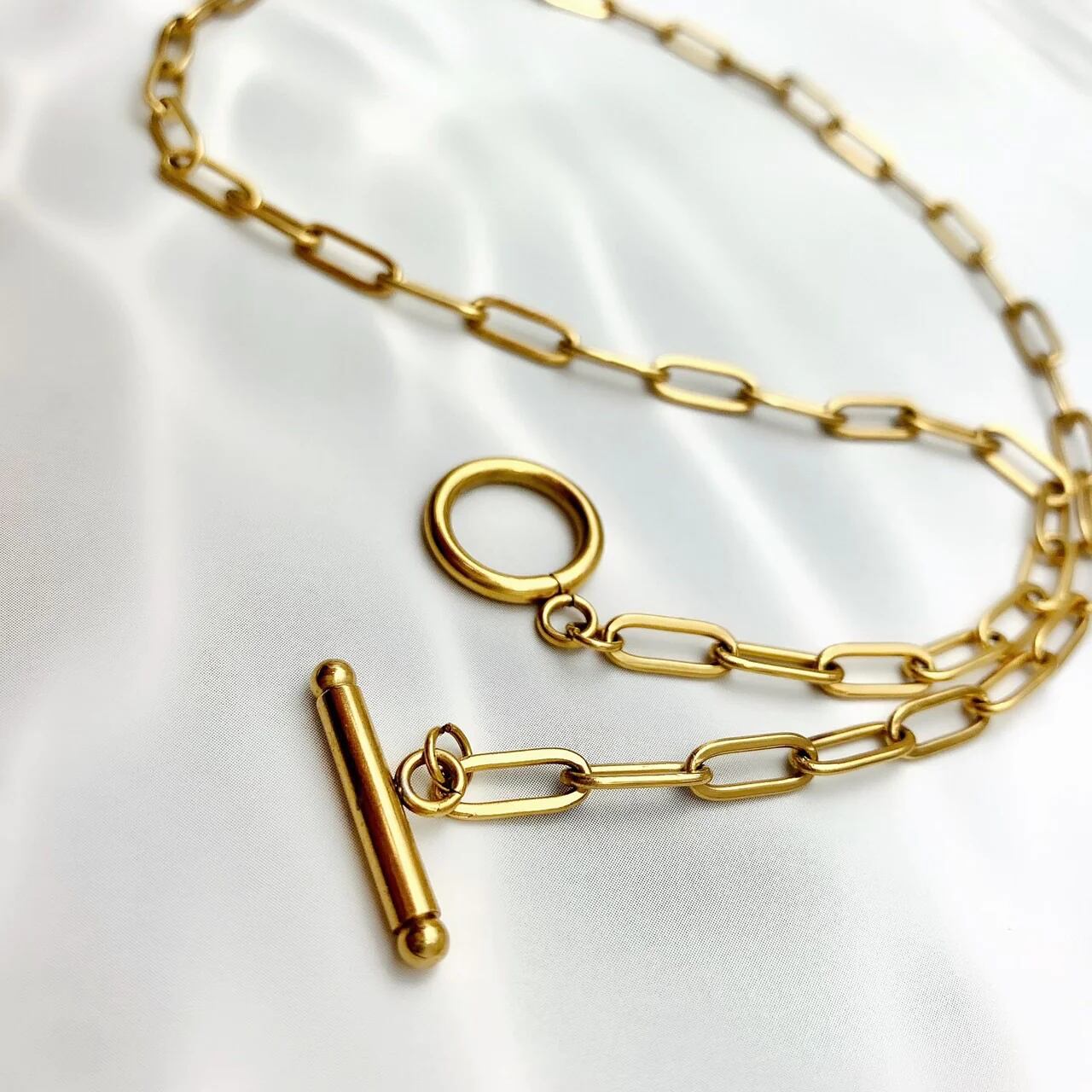 ▶︎ チェーン部分に、カットが入っているため光の当たり方で輝いて見える、通常のチェーンとは一味違ったネックレス。