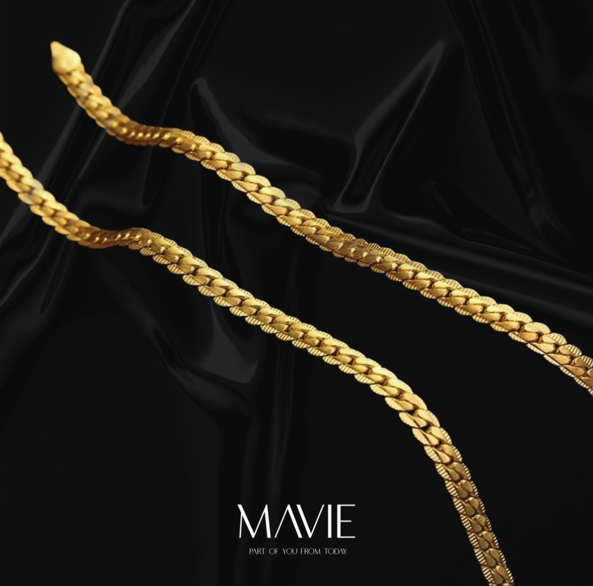 ▶喜平チェーンをフラットに、質感はスネークチェーンのように仕上げたスタイリッシュなデザイン。