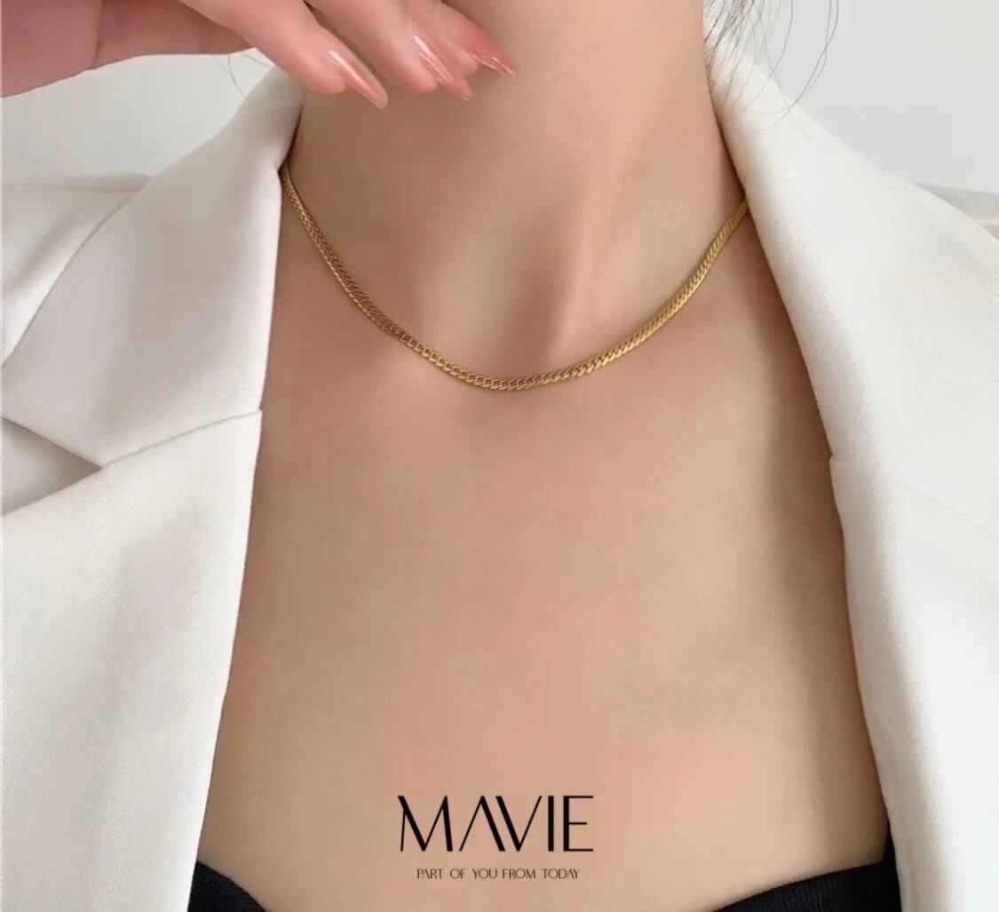 ▶喜平チェーンをフラットに、質感はスネークチェーンのように仕上げたスタイリッシュなデザイン。