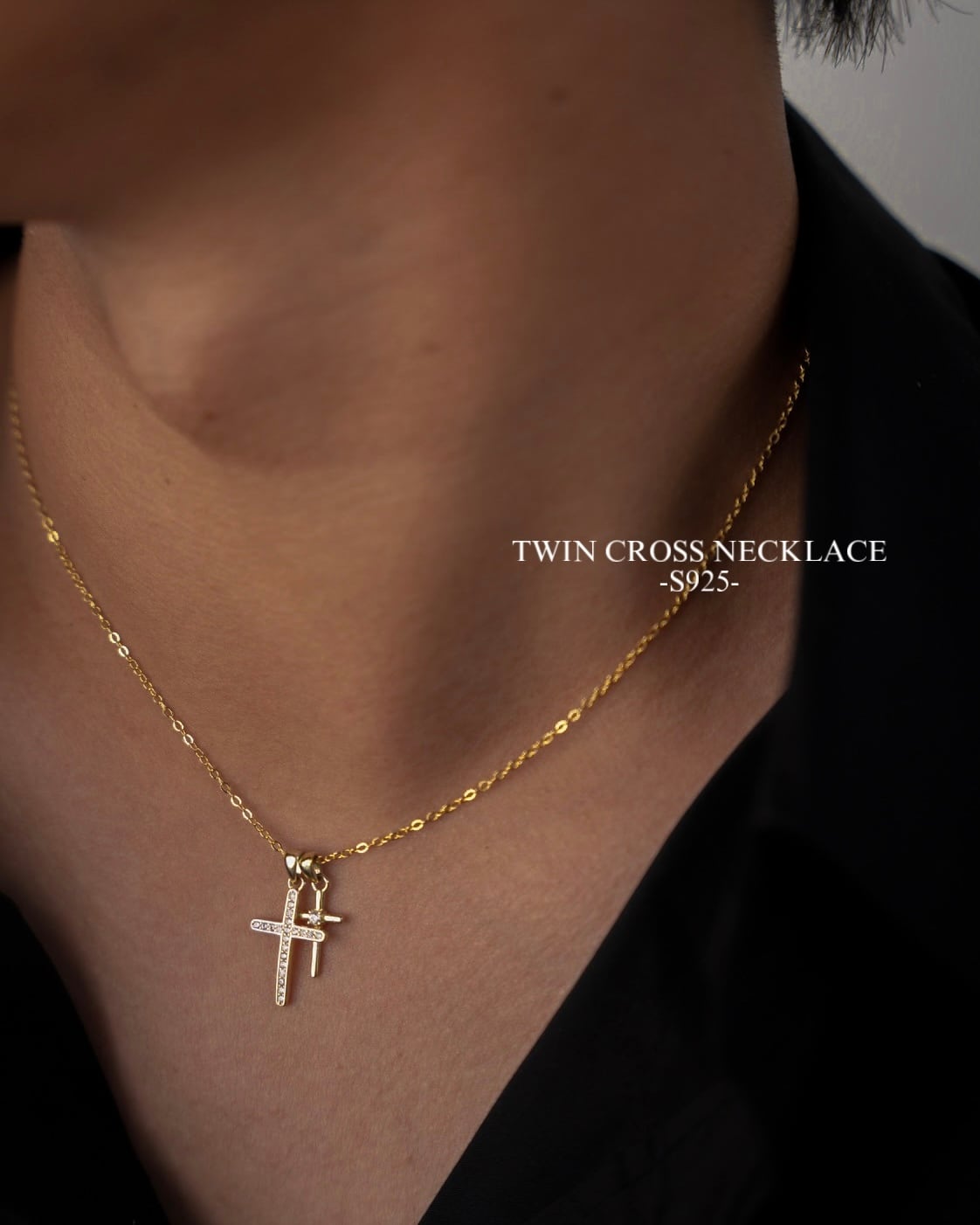 【7/30再入荷】Twin cross necklace -S925- ゴールド